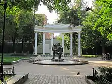 Будівля театру імені Моссовєта розташована в саду «Акваріум» і побудована за проєктом архітектора Михайла Степановича Жирова. Співавтори проєкту — архітектори Р. Закарьян, 3. Государева, Ст. Перлин, інженер Б. Щепетон[2].