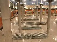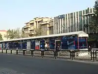 Автобусна зупинка на особливих автобусних маршрутах. Автобуси обладнані лівосторонніми дверима. 2 дверей — 2 черги: окремо для чоловіків та жінок