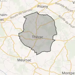 - Розташування муніципалітету Тезак на мапі Франції та сусідні муніципалітети