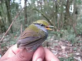 Тезія жовтоброва[2] (Tesia cyaniventer) — вид горобцеподібних птахів родини Cettiidae.