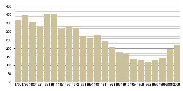 Динаміка населення (Baratier, Duby & Hildesheimer pour l’Ancien Régime ; Insee[3], EHESS[4] pour les chiffres issus des recensements légaux ):