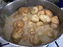Для сиропу використовуються мед, цукор, олію та корицю. Заготовки опускають в сироп і варять кілька хвилин. Потім їх викладають на деко, змащене маслом або жиром, і посипають корицею [3].