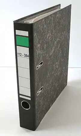 На корінець теки-реєстратора можна прикріпити наклейку із написом, що відображає її зміст. Круглий отвір в корінці теки полегшує її витягання з полиці.
