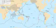 За острівною дугою розташований задуговий басейн (типові приклади: Охотське море, Південно-Китайське море і т. д.), в якому також може відбуватися спрединг.