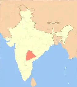 ![]() Розташування Телангани (позначено червоним) на мапі Індії | ||||