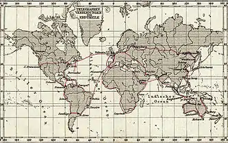У травні 1844 року на конвенті Демократичної партії в Балтиморі Джеймса Полка висунули кандидатом на пост президента США. Інформація про дебати делегатів тоді вперше передавалася телеграфом у Вашингтон.[1] У 1858 році був встановлений трансатлантичний телеграфний зв'язок. Потім проклали кабель в Африку, що дозволило в 1870 році встановили прямий телеграфний зв'язок Лондон — Бомбей (через релейну станцію в Єгипті і на Мальті).