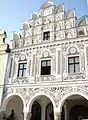 - Захарієва площа. Спочатку Старе місто Тельча було побудоване з дерева, але у 1386 році воно згоріло за одну ніч. Будинки були відбудовані заново з каменю, а після перебудови замку фасади будинків були також перебудовані в стилі ренесансу і бароко. Всі будинки на площі об'єднані спільними аркадними галереями і зберегли свій вигляд з середньовіччя. Будинки № 15 і № 61 прикрашені особливо цінними фресками в техніці сграффіто.