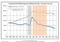 Динаміка населення з 1875 року в сучасних кордонах (Синя лінія: населення; Пунктир: відносна порівняльна динаміка населення землі Бранденбург; Сірий фон: період Третього рейху; Помаранчевий фон: період НДР)