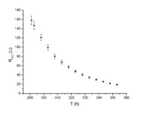 Для напівпровідникових пристроїв, таких як термістори, температурна залежність опору в основному визначається залежністю концентрації носіїв заряду від температури. Це експоненціальна залежність: