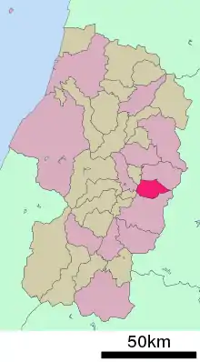 Розташоване у східній частині префектури. Виникло на основі призамкового містечка самурайського роду Ода, столиці автономного уділу Тендо-хан. Основою економіки є сільське господарство. Традиційні ремесла — виробництво японських шахів. Станом на 1 жовтня 2008[1] площа міста становила 113,01 км². Станом на 1 січня 2009[2] населення міста становило 63 421 осіб.