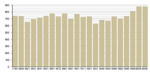Динаміка населення (base Cassini de l'EHESS pour les nombres retenus jusque 1962[3], base Insee à partir de 1968 (population sans doubles comptes puis population municipale à partir de 2006)[4] · [5] ):