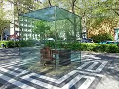 Пам'ятник являє собою скляний куб правильної форми на паркетній основі; всередині його стоять робочий стіл і крісло філософа. На столі стоїть старого зразка лампа світлого скла, що запалюється вечорами.