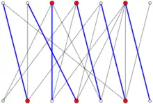 Одиниці матриці — ребра. Вимога, щоб ніякі дві одиниці не лежали на одній лінії, відповідає паруванню.