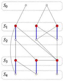 - Якщо таких вершин немає, але залишаються вершини, що не містяться в раніше побудованих множинах Sk, вибираємо довільну з них і вважаємо, що S2j+1 складається з цієї єдиної вершини.