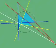 Точки перетину дотичних в вершинах трикутника, вписаного в лінію 2-го порядку, з протилежними сторонами лежать на одній прямій. |