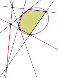 Якщо багатокутник з сторонами вписаний в конічний перетин і протилежні його сторони продовжені таким чином, щоб перетнутися в точці, то якщо цих точок лежать на прямій, остання точка теж буде лежати на цій прямій. |