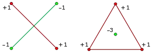 Наприклад, у цьому випадку d = 2, будь-яка множина з чотирьох точок на Евклідовій площині розбивна одним з двох способів. Вона може утворити трійку і одинака, де опукла оболонка трійки містить одинака; або ж, вона може утворити дві пари точок, так що ці точки формують кінці відрізків, що перетинаються.