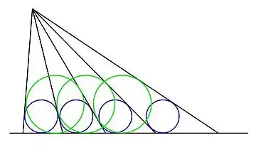 Ми отримали вираз для параметра в термінах геометричних величин і . Далі, визначаючи , отримуємо вираз для радіусів вписаних кіл, утворених вибором кожного N-го променя стороною трикутника: