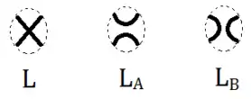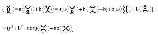 Маленькі картинки у першому співвідношенні позначають діаграми, які збігаються поза пунктирними колами, а всередині влаштовані так, як показано на картинках. Якщо позначити діаграми відповідно