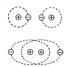 Для спрощеного позначення ковалентного зв'язку навколо символів кожного атома крапками або невеличкими кружками позначають, скільки електронів у зовнішньому шарі цього атома. Спільні пари електронів одночасно входять до складу електронів зовнішнього шару обох атомів, і при їх позначенні кружки або крапки ставлять посередині між символами відповідних атомів. Інколи для більшої наочності символи атомів і крапки, якими позначаються електрони зовнішнього шару цих атомів, обводять пунктирними колами.