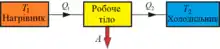 Робоче тіло двигуна дістає кількість теплоти від нагрівника, виконує роботу А над зовнішніми тілами і передає кількість теплоти холодильнику. Робота, яку виконує двигун, дорівнює: