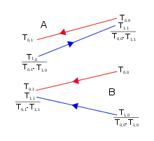Конденсатор парової турбіни. У ньому здійснюється процес фазового переходу, в якому температура залишається постійною, а охолоджувальна вода має два ходи (один хід зліва направо, а другий — в протилежному напрямі). Наявність декількох ходів дозволяє скоротити габаритні розміри апарату. схема апарату з U-подібними трубами — рух теплоносіїв у ньому близький до протитечії.