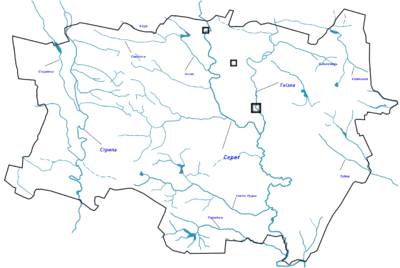 Найбільшою лівою притокою Серету є річка Гнізна. Пливучи з півночі від сторони Кровинки в напрямі на південь, річка Гнізна наближається до самої Теребовлі, але біля передмістя Раковиця звертає на захід і утворює великий закрут. Під Замковою Горою річка біля так званого Підзамча знову змінює течію, утворює «коліно» і повертає на південь. Переполовинивши Теребовлю на дві частини, Гнізна звертає на південний захід в сторону села Зеленче і річки Серет, у яку впадає.