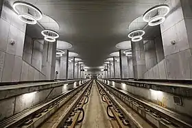 Формування образу станції знаходить своє максимальне вираження у зовнішньому вигляді платформ. Короб над коліями покрито сталевими полірованими листами, що підсвічується уздовж всієї довжини світлодіодними стрічками і розсіює відбите світло на платформи. Візуальні межі підлоги, стін і стелі максимально стерті за рахунок використання подібних матеріалів, поверхні м'яко перетікають одна в одну. Простір світлий та вільний.