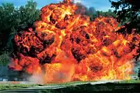 - висока температура в області вибуху (до 1000 °C), яка може спричинити загоряння навколишніх горючих матеріалів.