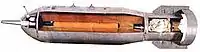 - з невеликою затримкою (90—500 мілісекунд) підривається другий заряд (іскровий) (або декілька зарядів), що викликає детонацію аерозолю. Основні руйнування спричиняє надзвукова повітряна ударна хвиля (швидкість детонації аерозольної хмари 1500—3000 м/с) і висока температура (залежить від калорійності пального). Як основний заряд у термобаричних боєприпасах застосовуються висококалорійні палива: