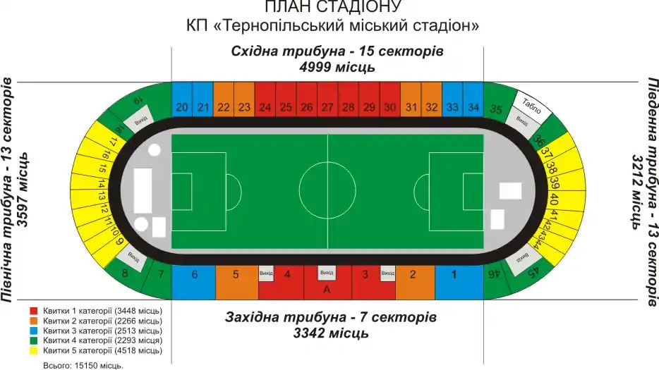 - Адреса стадіону: Проспект Степана Бандери, 15, Тернопіль.