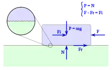 Максимальна сила тертя спокою Frmax є пропорційною до нормального тиску N тіла на площину (закон Амонтона — Кулона):