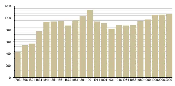Динаміка населення (base Cassini de l'EHESS pour les nombres retenus jusque 1962[3], base Insee à partir de 1968 (population sans doubles comptes puis population municipale à partir de 2006)[4] · [5] ):