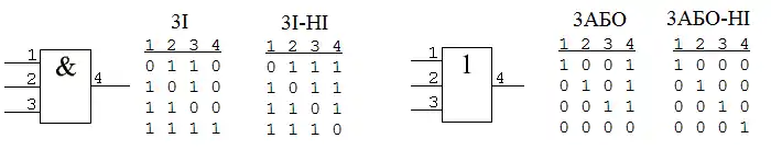 Сукупність тестових наборів, які перевіряють всі константі несправності схеми називається тестом перевірки справності. Для елементів логічного базису (І, АБО) тести перевірки справності мають довжину , де - кількість входів елемента. На рисунку 3 наведено тести перевірки справності трьохвходових елементів І, І-НІ, АБО, АБО-НІ.
