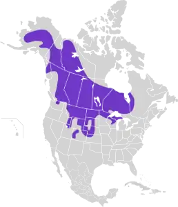 Вид поширений від Центральної Аляски і Юкону аж до заходу Квебеку. У південному напрямку ареал досягає Великих Рівнин.