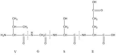 Тетрапептид Val-Gly-Ser-Glu містить чотири амінокислотних залишки (валін-гліцин-серин-глутамінова кислота).