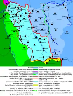 Після кінця І Світової війни, обидві з двох новостворених незалежних держав — Польща і Чехословаччина претендували на область. Область була важлива для Чехії бо містила залізницю, що сполучала Чеську Сілезію зі Словаччиною (Кошице-Богумінська залізниця була однією з двох залізниць, які пов'язали чеські провінції із Словаччиною у той час). Область - багата на кам'яне вугілля. Багато важливих вугільних шахт, і металургійних заводів було розташовано там. Польська сторона базувала свою заяву на етнічних критеріях: більшість населення області були поляками згідно з останнім австрійським переписом (1910).[1] .
