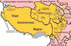 Етнічна територія тибетців, на даний час, не має статусу незалежності. Територіально вона майже повністю відноситься до Китаю, де охоплює повністю Тибетський автономний район, частково провінції Сичуань (Аба-тибетський і Ганьцзи-тибетський автономні округи, Мулі-тибетський автономний повіт), Ганьсу (Ганнань-тибетський автономний округ і Тяньчжу-тибетський автономний повіт), Цінхай (Хайбей-тибетський, Хуаннань-тибетський, Хайнань-тибетський, Голо-тибетський, Юйшу-тибетський та Хайсі-монгол-тибетський автономні округи) — на всіх указаних територіях тибетці проживають компактно і до останнього часу становлять переважну більшість населення.