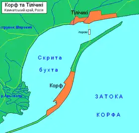Село розташоване на березі гавані Скритої затоки Корфа Берингового моря.