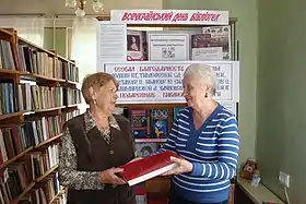 ![]() Світлана Дмитрівна з бібліотекарем Світланою Борисівною | |