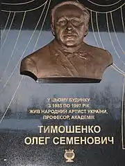 1 грудня 2012 року, на фасаді будинку, де проживав О. С. Тимошенко, встановлено меморіальну дошку.