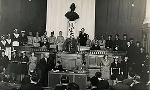 | Інавгураційне засідання Тимчасової консультатичної асамблеї. Виступає генерал Шарль де Голль. Алжир, палац Карно, 3 листопада 1943 року. | |