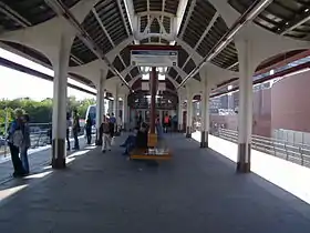 Конструкція станції — естакадна з острівної платформою, споруджена за індивідуальним проектом. Довжина платформи: 40,150 м, ширина платформи: 9,550 м