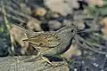 Птах розміром приблизно з горобця. Маса тіла — 19—20 г, довжина тіла — близько 15 см. Статевий диморфізм не виражений. Дорослий птах зверху рудувато-бурий, з темною смугастістю; покривні пера вух бурі, зі світлими рисками; смуги над очима, горло, шия з боків і спереду, воло і груди сірі; на рудувато-бурих боках тулуба темно-бурі поздовжні смуги; черево і підхвістя білуваті; махові і стернові пера бурі; дзьоб чорний; ноги жовтувато-бурі. Молодий птах строкатіший, особливо знизу; сірий відтінок є лише на голові[2].