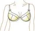 Underwire bra (бюстгальтер з кісточками). Більшість конструкцій бюстгальтерів мають тонкі, напівкруглі смуги з жорсткого матеріалу, що допомагають підтримувати груди. Кісточка може бути зроблена з металу, пластику або гуми. Вона вшита в тканину[4] під кожною чашечкою від центру до пахв.[7]