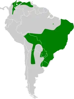 - E. m. meloryphus Wied-Neuwied, 1831 — східна Бразилія (від Мараньяну і Сеари на південь до Мату-Гросу і Ріу-Гранді-ду-Сул), північна і східна Болівія, східний Парагвай, північно-західна і північно-східна Аргентина (на південь до Кордови і північного Буенос-Айреса), Уругвай, трапляється на крайньому південному сході Перу (Пуно).