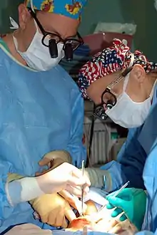 Тиреоїдектомія — хірургічна операція при якій видаляється щитоподібна залоза. Найчастіше, цей вид оперативного втручання застосовують при злоякісних новоутвореннях щитоподібної залози, а також при доброякісних новоутвореннях, при яких нормальна тканина щитоподібної залози повністю заміщається патологічною та/або призводить до компресії дихальних шляхів. У зв'язку з анатомічним розташуванням щитоподібної залози, виконання тиреоїдектомії може призводити до таких ускладнень як тимчасова або постійна втрата голосу, гіпокальціємія, кровотеча тощо. Проте при виконанні тиреоїдектомії досвідченим ендокринним хірургом, частота таких ускладнень низька.[1]