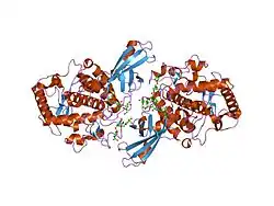 | Символи | tyrosinasemonophenol oxygenasemonophenol oxidasemonophenolasemonophenoldihydroxy-L-phenylalanine oxygen oxidoreductasemonophenol monooxidasepolyaromatic oxidasemonophenol,L-dopa:oxygen oxidoreductaseL-tyrosine monooxygenasemonophenol dihydroxyphenylalanine:oxygen oxidoreductaseN-acetyl-6-hydroxytryptophan oxidasetyrosine-dopa oxidasepolyphenolase | ||||||