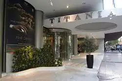 Титанія — готель у самому серці історичного центру Афін, зведений у 1970-ті роки по вулиці Панепістиміу (Університетська), між двома головними площами міста — Синтагма та Омонія. 2004 року готель був капітально реконструйований. Хол прикрашений пентелійським мармуром у поєднанні із мозаїкою, що зображує фрагменти давньогрецьких міфів.