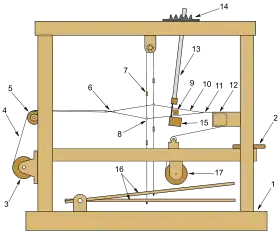 - Триб — коліщатко в місці проходу вала навою через раму, споряджене храповим механізмом